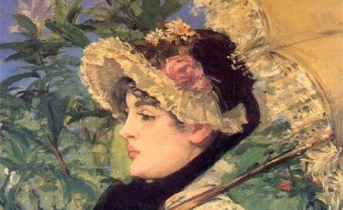 „Wiosna” przedstawia portret aktorki Jeanne Demarsy. Po raz pierwszy wystawiono go w 1883r. w Paryżu. Eksperci interpretują dzieło, jako pewien symbol zmian zachodzących w kobietach żyjących za czasów Maneta. Demarsy ma na nim promować ideę kobiety niezależnej, ale wciąż kobiecej i pięknej. Chociaż przyciąga ona wzrok, to jednak nie odwzajemnia go, ponieważ ujęty został wyłącznie profil jej twarzy. Tytuł obrazu nawiązuje natomiast do tła, które stanowi roślinność świetnie kontrastująca z bielą sukni postaci.