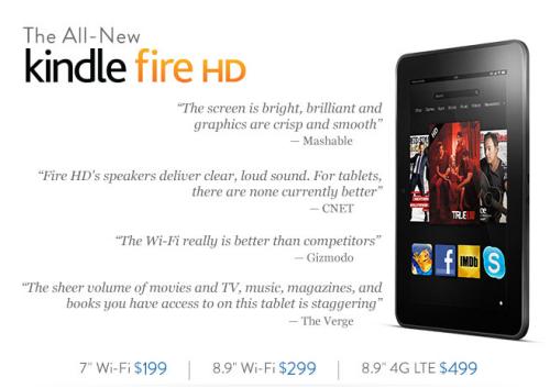 Zgodnie z zapowiedziami, podczas konferencji w Santa Monica Amazon zaprezentował nowe tablety: Kindle Fire HD 7 i Kindle Fire HD 8,9. Pokazano także odświeżoną wersję starego Kindle Fire.