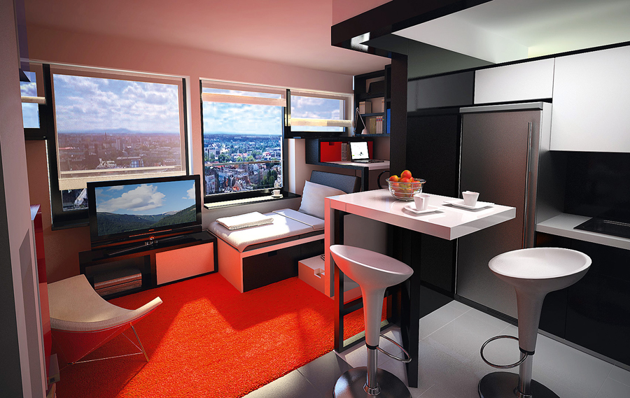 Pod nazwą mikroapartament kryje się samodzielne, w pełni funkcjonalne mieszkanie o powierzchni nawet zaledwie 12 metrów kwadratowych. Skąd pomysł na użycie słowa „apartament” na określenie takiej klitki? Jak zapewnia deweloper, lokale te, mimo maksymalnego skompresowania, będą spełniały wysokie standardy. Dotyczy to nie tylko samego mieszkania, ale także części wspólnych. We wrocławskim mikroapartamentowcu (zaadaptowany budynek Hotelu Asystenta) będą m.in. portiernia, monitoring, ochrona, klimatyzacja, szybkobieżne windy.