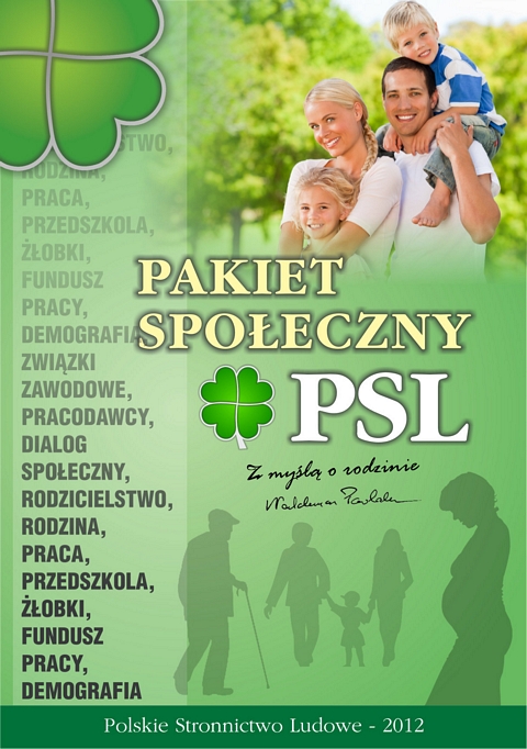 Zgodnie z wyjaśnieniami rzecznika partii, opracowany przez PSL pakiet propozycji i ustaw obejmuje takie obszary, jak polityka rodzinna, polityka demograficzna, polityka edukacyjna, polityka ochrony zdrowia, polityka zabezpieczenia społecznego, polityka zatrudnienia oraz rozwiązania kształtujące sprawniejszą i efektywniejszą współpracę rządu z partnerami społecznymi.